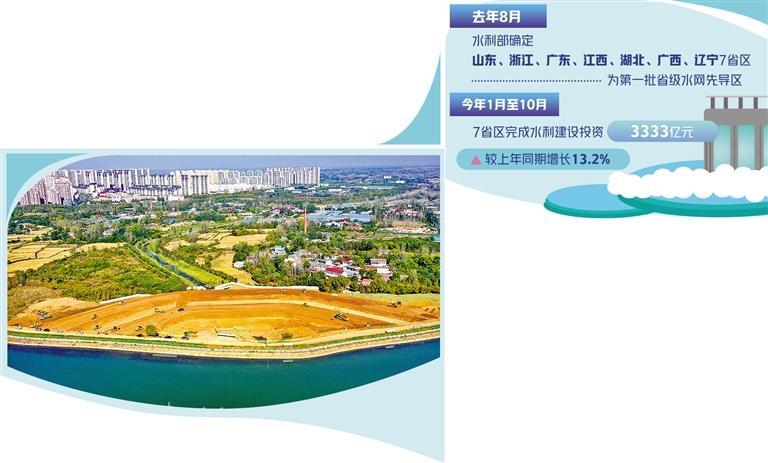 去年8月,水利部确定了第一批省级水网先导区,分别是山东、浙江、广东、江西、湖北、广西、辽宁7省区。一年多来,先导区省份创新体制机制,持续加大水网工程建设投入力度。其中,今年1月至10月,7省区完成水利建设投资3333亿元,较上年同期增长13.2%,占全国水利建设总投资的34.2%。