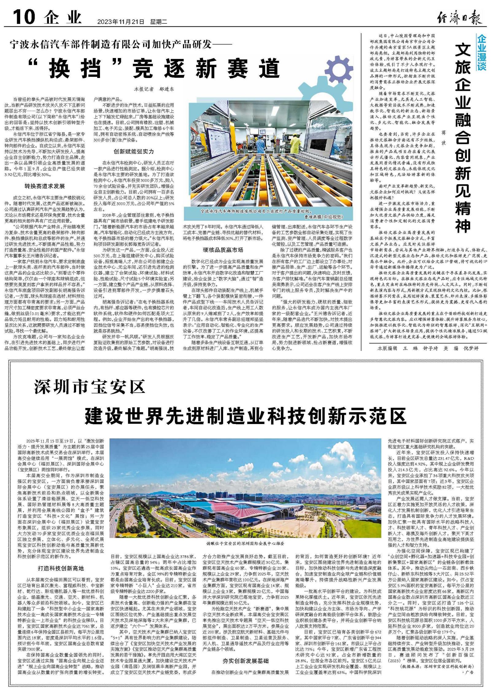 “强大的研发能力、硬核的质量、细致的服务,让永信汽车成为国内主流汽车厂家的一级配套企业。”王兴德告诉记者,近年来,随着产品迭代不断加快,对技术提出更高要求。顺应发展趋势,公司通过持续的研发投入和长期的技术、工艺积累,不断改进生产工艺,开发新产品,加快市场布局,努力挺进新领域、抢占新赛道,增强核心竞争力。