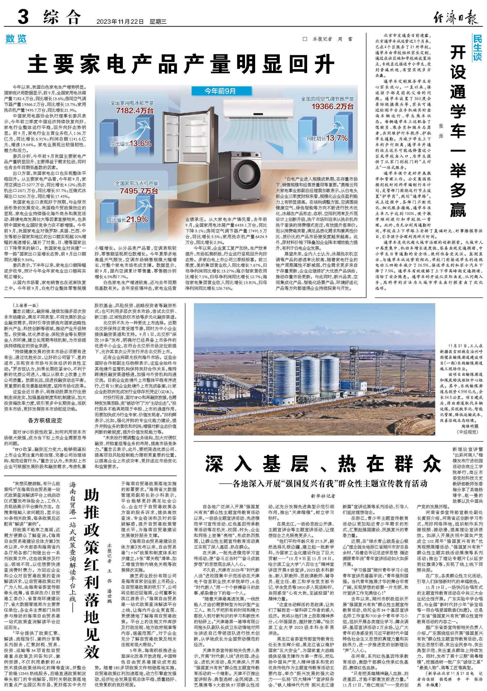 展望未来,业内人士认为,冰箱洗衣机空调等产品的渗透率比较高,随着家电行业的地产周期属性不断减弱,行业需求更多来自于存量更新,企业应继续扩大优质产品供给,推动存量市场更新。与此同时,新兴品类、空间集成化产品、智能化场景产品、环境舒适化产品等方向都值得企业持续探索与开发。