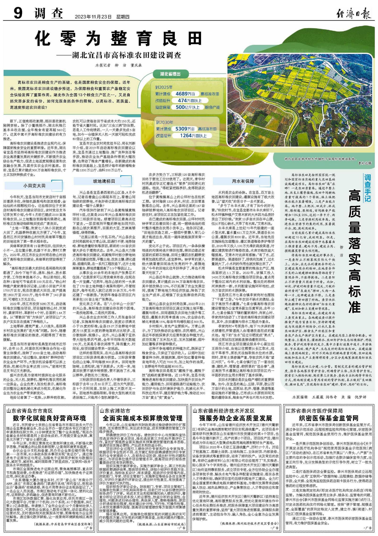 高标准农田是粮食生产的基础,也是国家粮食安全的保障。近年来,我国高标准农田建设稳步推进,为保障粮食和重要农产品稳定安全供给发挥了重要作用。湖北作为全国13个粮食主产区之一,又是自然灾害多发的省份,如何克服自然条件的限制,以高标准、高质量、高速度推进农田建设?