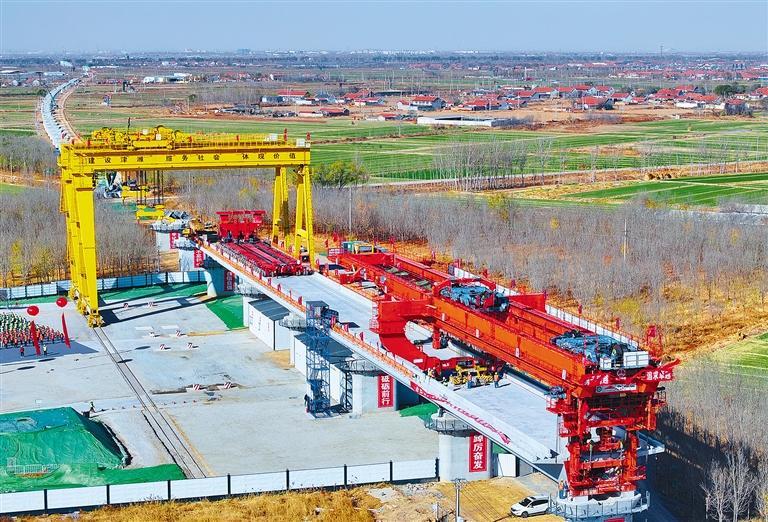 11月23日,在山东省东营市利津县,津潍高铁全线首榀箱梁成功架设,项目施工进展顺利。津潍高铁是国家“八纵八横”干线高铁网、沿海通道、沿黄达海通道的重要组成部分。项目建成后将结束东营、滨州不通高铁的历史。