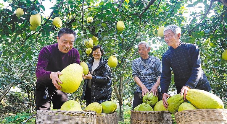 11月22日,重庆市丰都县双龙镇的果农正采摘柚子。当地红心柚规模化种植基地面积已超10万亩,带动农民增收致富。本报记者 吴陆牧摄