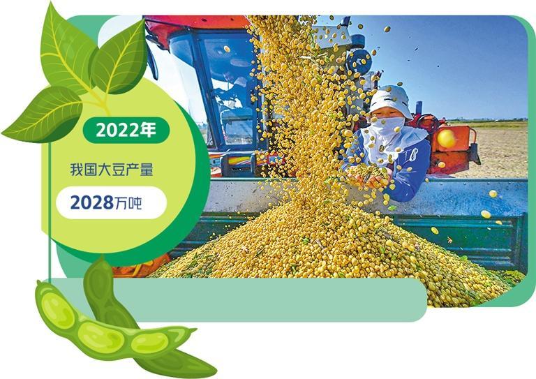 我国是大豆的故乡,是世界大豆的发源地,也曾经是全球大豆的主要供应国。随着需求不断扩大,我国逐渐从大豆净出口国转变为净进口国。受土地资源、单产水平和管理成本等限制,我国对进口大豆的依赖呈长期态势。从2016年突破1亿吨以来,我国大豆消费一直维持在1.1亿吨以上的高位,而国产大豆产量常年不足2000万吨。2022年大豆产量2028万吨,首次突破2000万吨大关,但自给率依然只有18.5%。