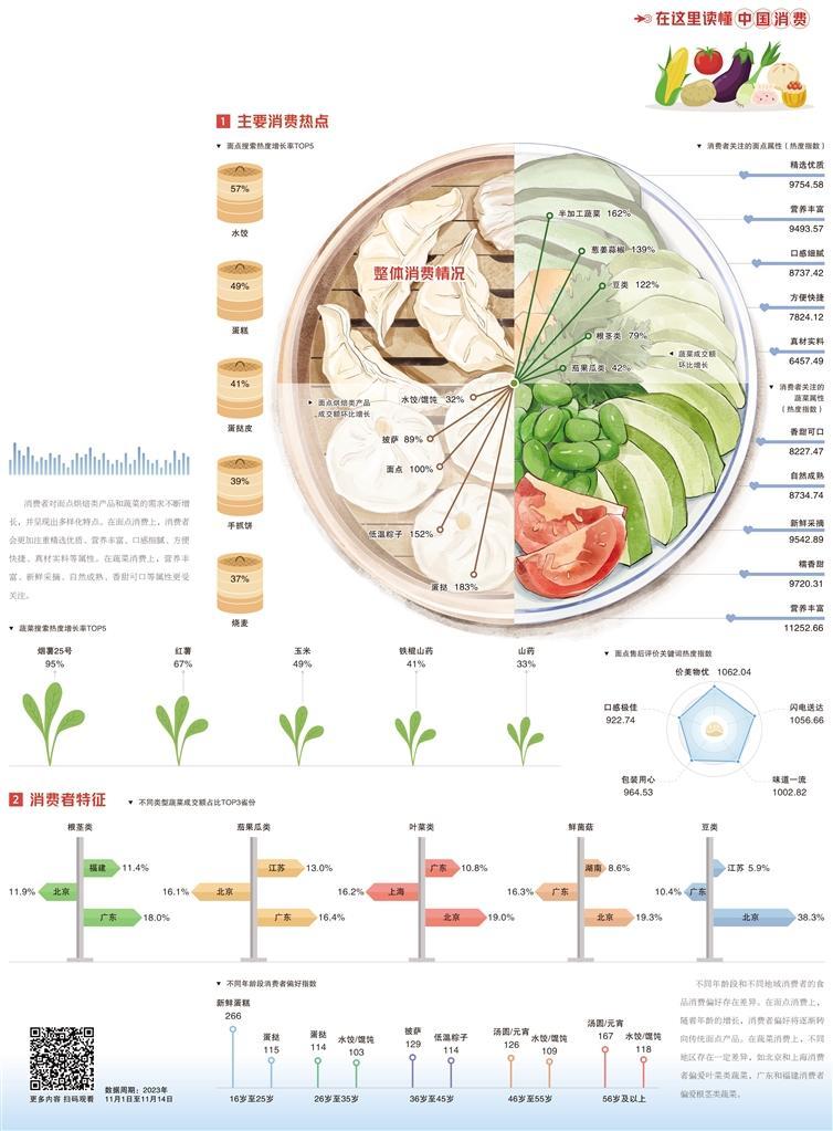 另一方面,消费者对食品口感和品质的要求也不断提高。数据显示,消费者在选购面点时,更容易被营养、口感、用料等因素影响;在购买蔬菜时,则更加注重新鲜、自然、有机等属性。这表明,消费者在选购食品时越来越注重品质和口感,同时也更加关注营养价值和健康属性。