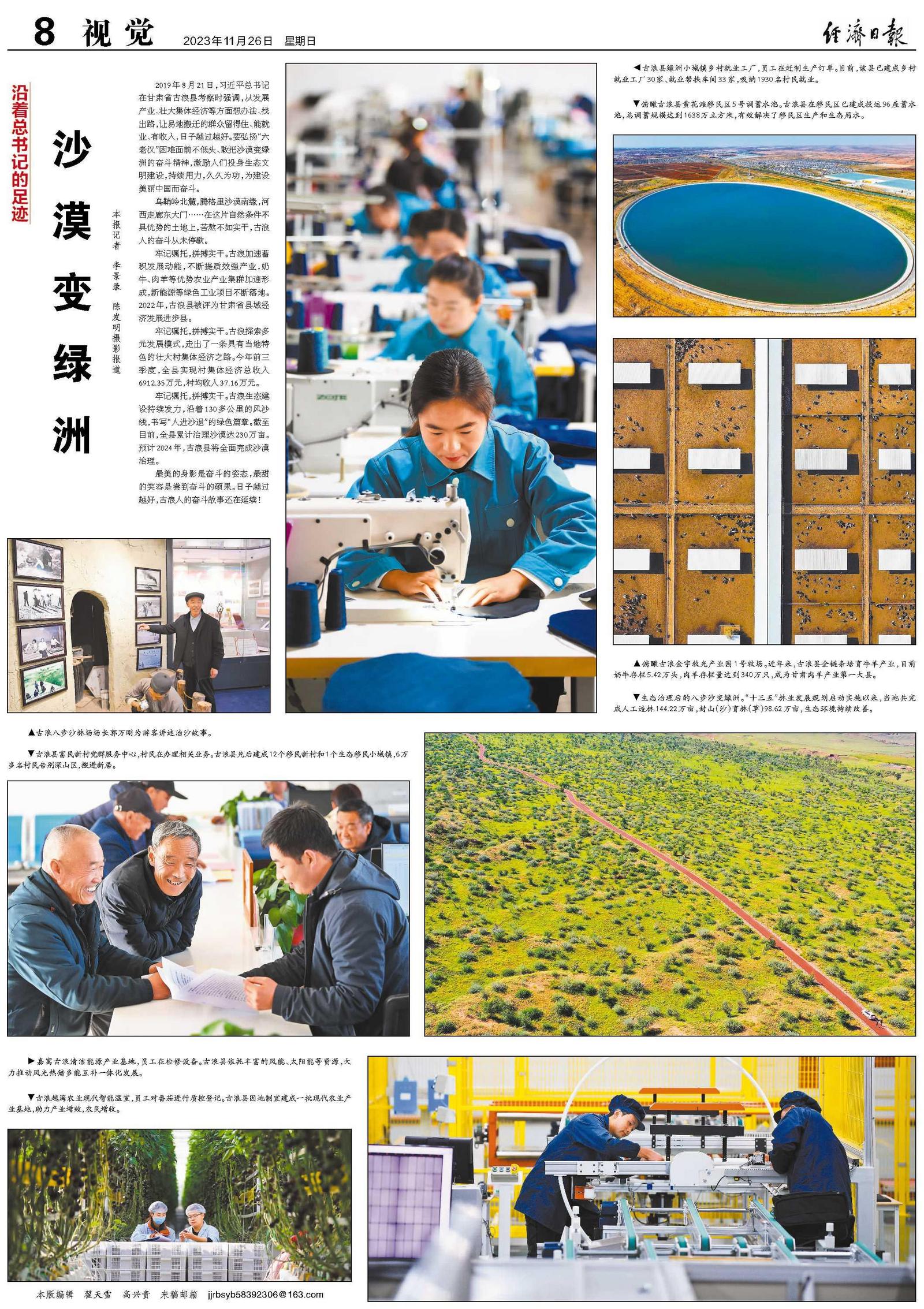 牢记嘱托,拼搏实干。古浪生态建设持续发力,沿着130多公里的风沙线,书写“人进沙退”的绿色篇章。截至目前,全县累计治理沙漠达230万亩。预计2024年,古浪县将全面完成沙漠治理。