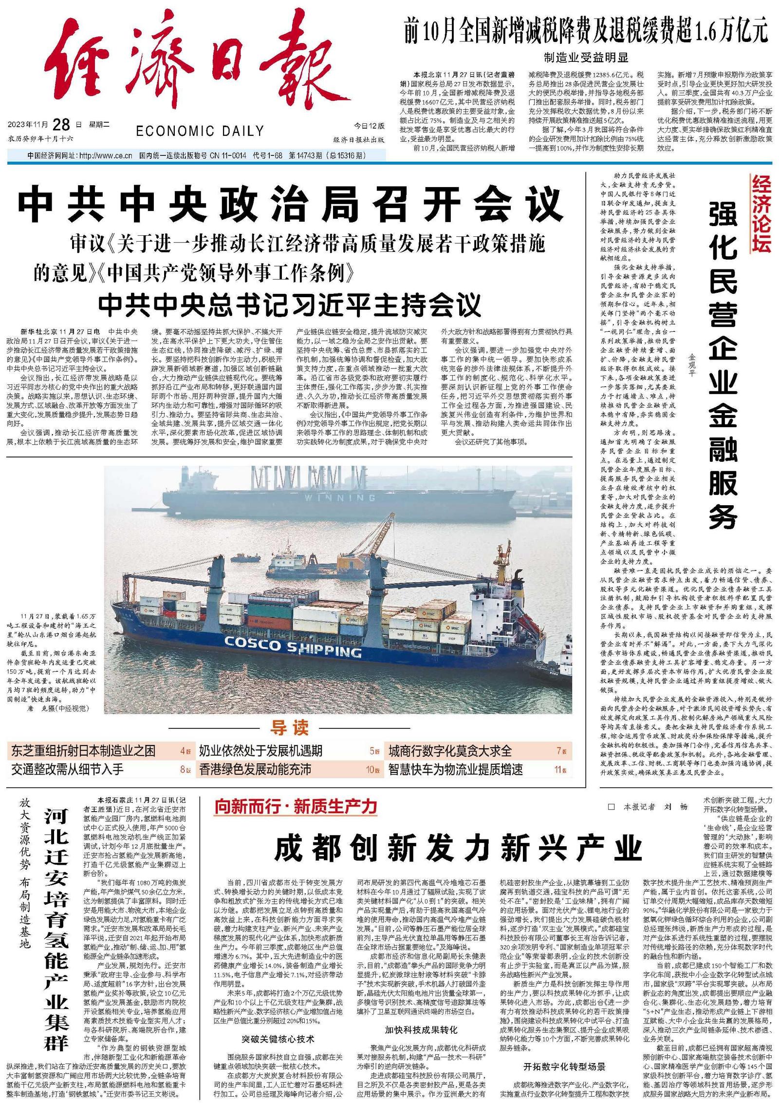 “供应链是企业的‘生命线’,是企业经营管理的‘大动脉’,影响着公司的效率和成本。我们自主研发的智慧供应链系统实现了全链路上云,通过数据建模等数字技术提升生产工艺技术、精准预测生产产能,属于业内首创。依托这套系统,公司订单交付周期大幅缩短,成品库存天数缩短90%。”华融化学股份有限公司是一家致力于氢氧化钾绿色循环综合利用的企业,公司副总经理张炜说,新质生产力形成的过程,是对产业体系进行系统性重塑的过程,要摆脱对传统增长路径的依赖,充分体现数字时代的融合性和新内涵。
