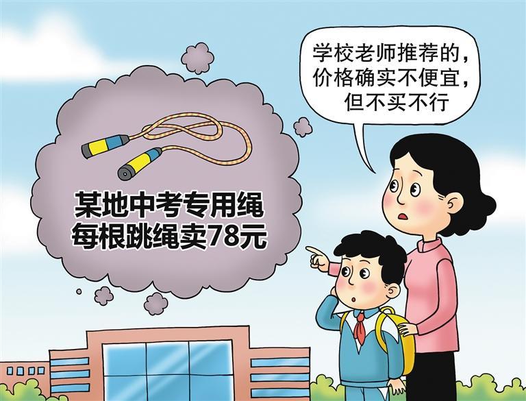 “考试指定这个品牌,学校老师推荐的,价格确实不便宜,但不买不行。”据报道,浙江某地教育部门长期要求中考使用某一品牌跳绳,不少中小学以指定或暗示的方式要求学生和家长购买,每根跳绳价格达78元,远高于市场同类产品。2020年,教育部等五部门印发《关于进一步加强和规范教育收费管理的意见》,明确不得强制或者暗示学生及家长购买指定的教辅软件或资料。如无充足理由,长期通过单一来源采购方式指定采购某一产品,有违市场公平竞争原则。有关部门应进一步完善中考体育跳绳测评方式,包括能否选用更多品牌的跳绳设备等,避免给学生和家长带来不必要的困扰。(时 锋)