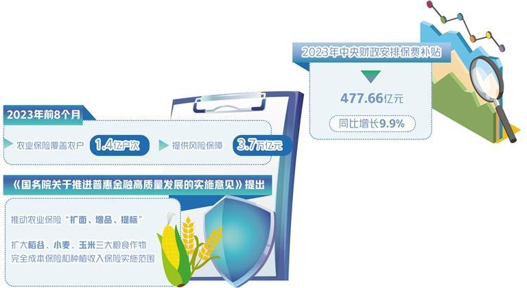 国家金融监管总局的数据显示,我国农业保险已覆盖农林牧渔各领域,2023年前8个月,覆盖农户1.4亿户次,提供风险保障3.7万亿元。
