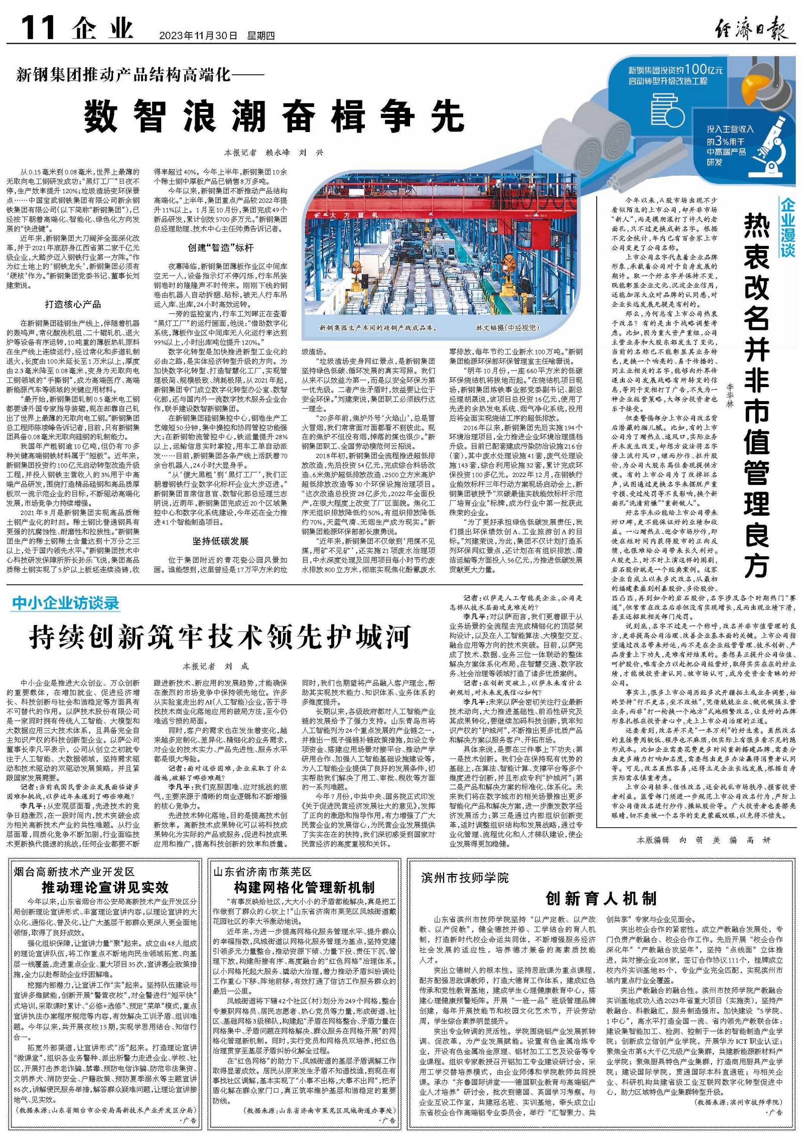 今年以来,新钢集团不断推动产品结构高端化。“上半年,集团重点产品较2022年提升11%以上。1月至10月份,集团完成49个新品研发,累计创效5700多万元。”新钢集团总经理助理、技术中心主任帅勇告诉记者。