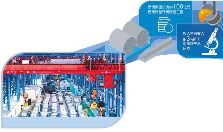 我国年产粗钢逾10亿吨,但仍有70多种关键高端钢铁材料属于“短板”。近年来,新钢集团投资约100亿元启动转型改造升级工程,并投入钢铁主营收入的3%用于中高端产品研发,围绕打造精品硅钢和高品质厚板双一流示范企业的目标,不断驱动高端化发展,市场竞争力持续增强。