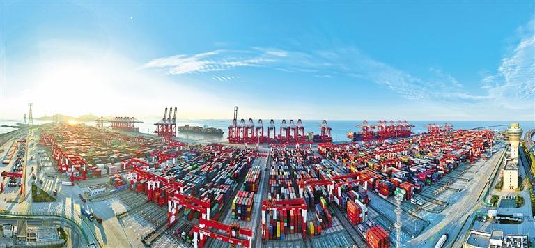 12月2日,上海港洋山深水港区集装箱吞吐作业繁忙有序。今年前10月,上海港完成集装箱吞吐量4020万标箱,同比增长2.8%,其中10月份完成集装箱吞吐量400万标箱,位列全国各大港口之首。
