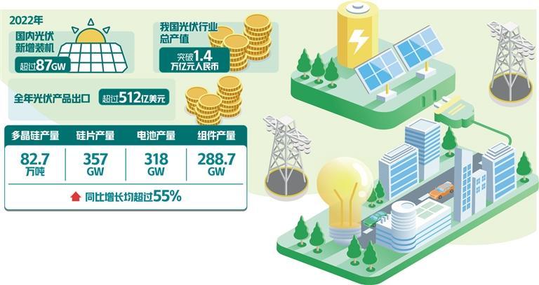 “我国光伏产业在政策支持与全球能源转型需求的加持下,迎来新一轮快速增长,产业链上下游发展势头强劲,总体运行良好。”江苏省光伏产业协会秘书长范国远说,在推动能源转型的长期需求下,光伏行业还将延续快速增长趋势,未来3年至5年,光伏行业仍有较大市场空间。