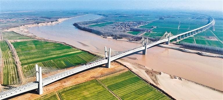 12月8日,列车驶过济郑高铁长清黄河铁路特大桥。