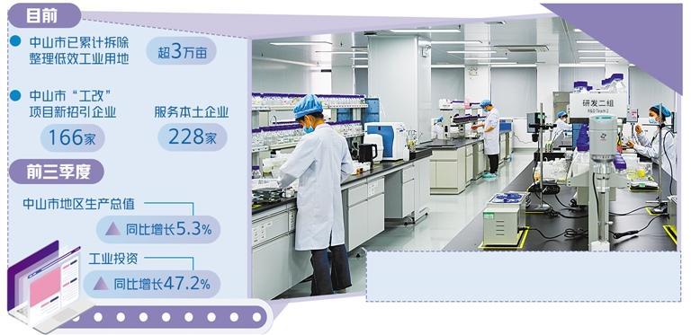 改出新空间,迎来新气象。目前中山市“工改”项目新招引企业166家、服务本土企业228家、预计推动新增投资近850亿元。本土传统制造企业忙增资扩产、数智化升级,战略性新兴产业项目纷纷落户,中山市的产业格局被重塑。前三季度,中山市地区生产总值同比增长5.3%,工业投资同比增长47.2%,增速均排名广东前列。