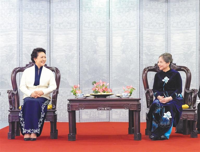 彭丽媛同吴氏敏和越南优秀妇女代表亲切交流,分享了自己作为联合国教科文组织促进女童和妇女教育特使为推动妇女儿童事业发展所做工作。彭丽媛表示,中国坚持男女平等,高度重视保障女性各项权利,越方在促进妇女进步、提高妇女地位、保障妇女权益等方面有许多好的经验和做法,双方可以加强交流互鉴,帮助更多女性改变自身命运,实现人生价值。