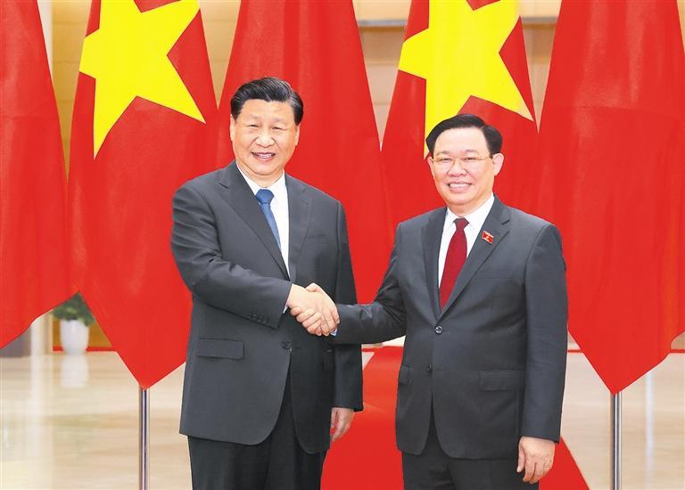 习近平指出,近年来,中国全国人大和越南国会保持着良好交往,各层级交流合作不断加强。希望两国立法机构继续深化交流合作,相互借鉴立法监督方面的有益经验,多做有利于两国人民心意相通的工作,为完善各自现代化治理体系和能力、夯实中越命运共同体的民意基础作出积极贡献。