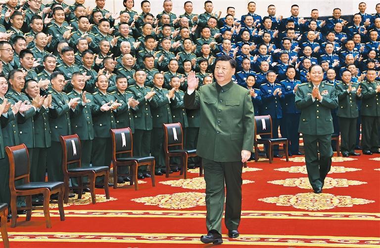 12月15日上午,习近平在南宁亲切接见驻南宁部队上校以上领导干部,代表党中央和中央军委向驻南宁部队全体官兵致以诚挚问候,并同大家合影留念。张又侠陪同接见。