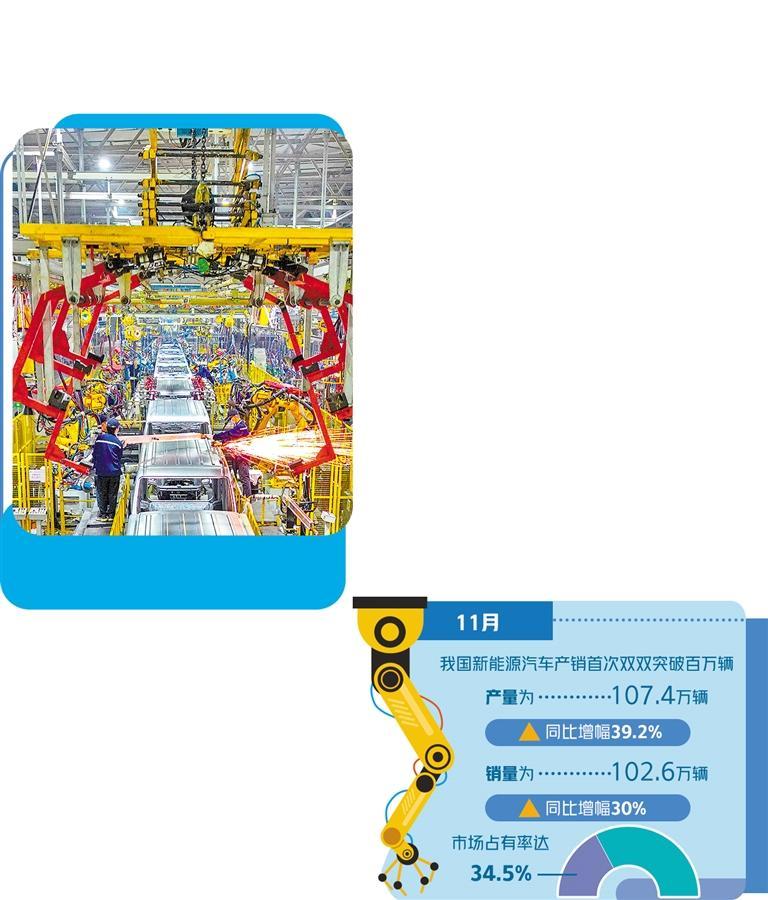 中国汽车工业协会(以下简称“中汽协”)近日发布数据显示,11月份我国汽车单月产量创下历史新高,新能源汽车单月产销量更是首次双双突破100万辆。