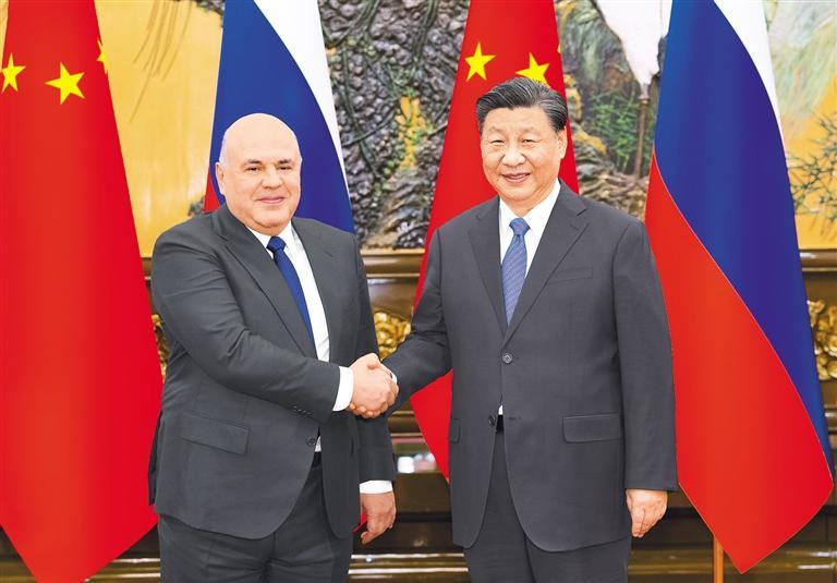 习近平强调,中国经济韧性强、潜力大、回旋余地广、长期向好的基本面没有改变。中国坚定推动高质量发展,推进高水平对外开放,将为包括俄罗斯在内的各国发展提供新机遇。双方要充分发挥政治互信、经济互补、设施互联、民心互通优势,不断丰富合作内涵,深化经贸、能源、互联互通等领域合作,共同维护产业链供应链安全稳定。双方要办好明后两年中俄文化年,多设计、多开展丰富多彩的人文交流活动,夯实两国世代友好的社会和民意基础。