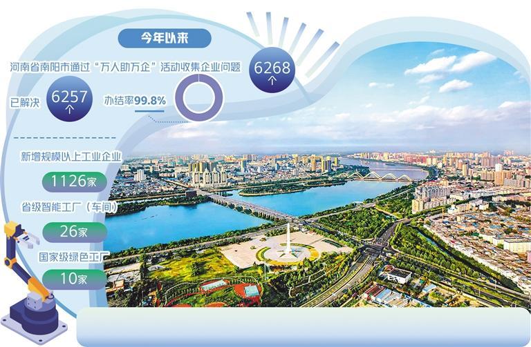今年以来,南阳市通过“万人助万企”活动收集企业问题6268个,已解决6257个,办结率99.8%。