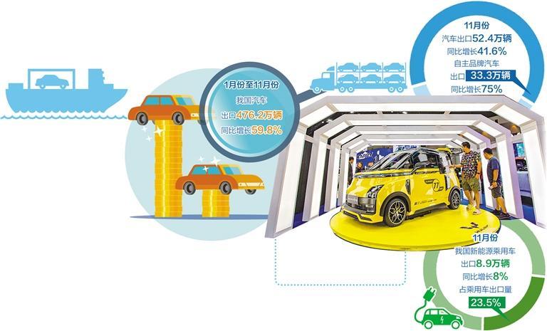 2023年,中国经济的亮点之一是新能源汽车出口取得耀眼成绩。海关总署最新数据显示,前11个月,我国汽车出口476.2万辆。全年出口量有望突破500万辆,创造新的历史纪录。可以说,中国汽车产业在新能源转型中已经站在世界前列。