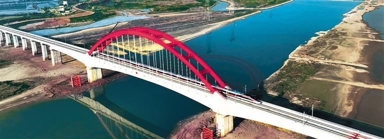 12月27日,杭昌高铁全线贯通运营,一辆G4012次智能复兴号动车组行驶在江西省信江西支特大桥上。杭昌高铁是继沪昆高铁杭州至南昌段后,连接杭州至南昌的又一高铁大通道,途经众多著名旅游景区,串起一条黄金旅游线,其建成通车对带动沿线地区经济社会发展具有重要意义。胡国林摄(中经视觉)