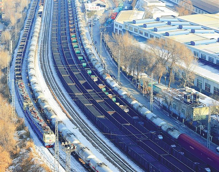 太原北站货运点,载着煤炭、钢铁等物资的货运列车驶向全国各地。岁末之际,太原北站强化运输管控,确保物流顺畅,全力保障各类物资安全正点发运。