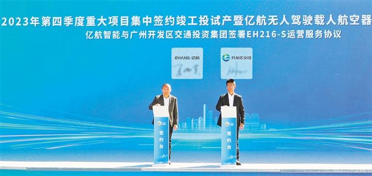 在当天的活动中,除了亿航EH216-S无人驾驶载人航空器的全球商业首飞演示,还有111个涵盖生物医药、智能装备、新一代信息技术、集成电路、科技研发等未来产业和战略性新兴产业等多个领域的重大项目竣工投试产。项目总投资额约1098亿元,预计达产产值、营业收入约1472亿元。