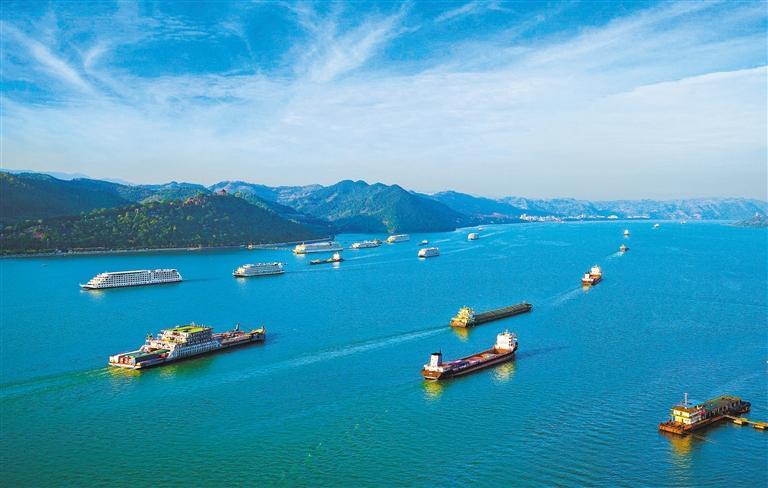 ▼三峡库区蓄水后,重庆丰都县形成平湖景象,更多的船只可以到达上游,给库区经济带来新的发展机遇。