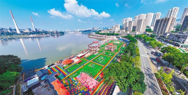 ▼市民在巴南区巴滨路运动乐园游玩。巴南区持续提升长江岸线生态品质,打造“滨江景观长廊”,让市民乐享城市美好环境。