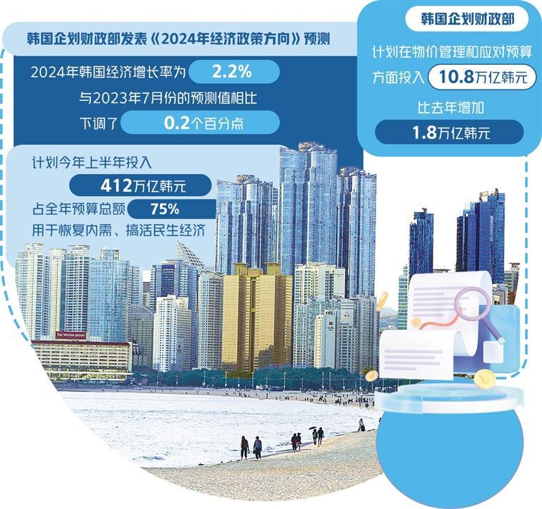 日前,韩国政府公布了2024年国内生产总值(GDP)预测值,与2023年7月份发布的数值相比,进行小幅下调。而2023年韩国经济增长率仅为1.4%,创下3年来的最低水平。面对经济下行风险,韩国政府近日公布了一系列应对举措。