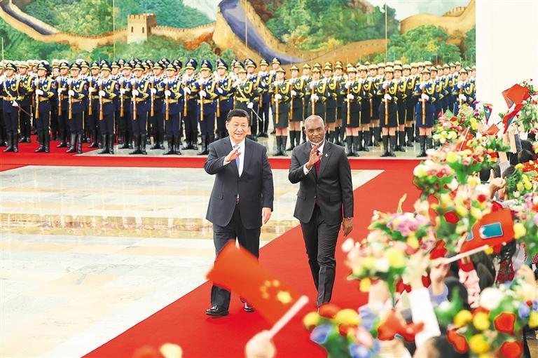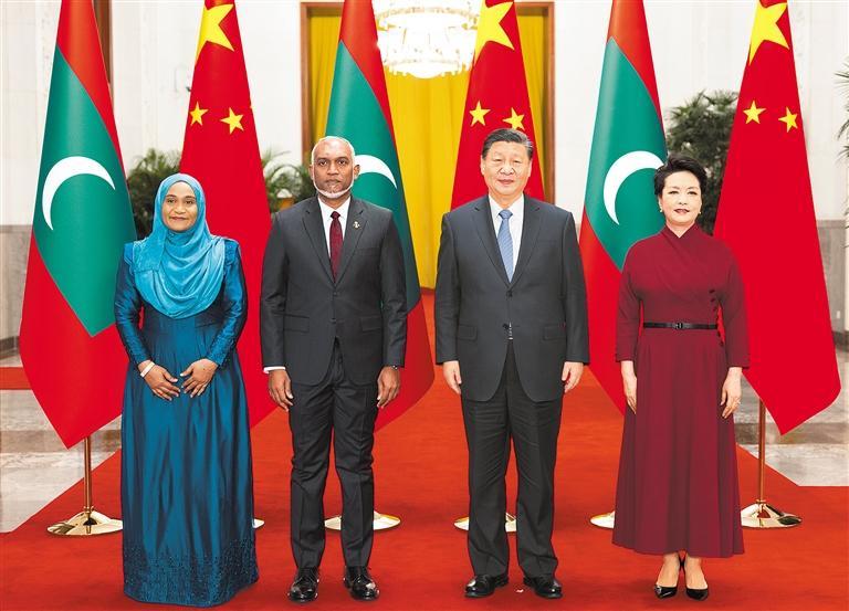 新华社北京1月10日电(记者朱超)1月10日下午,国家主席习近平在人民大会堂同来华进行国事访问的马尔代夫总统穆伊兹举行会谈。两国元首宣布,将中马关系提升为全面战略合作伙伴关系。