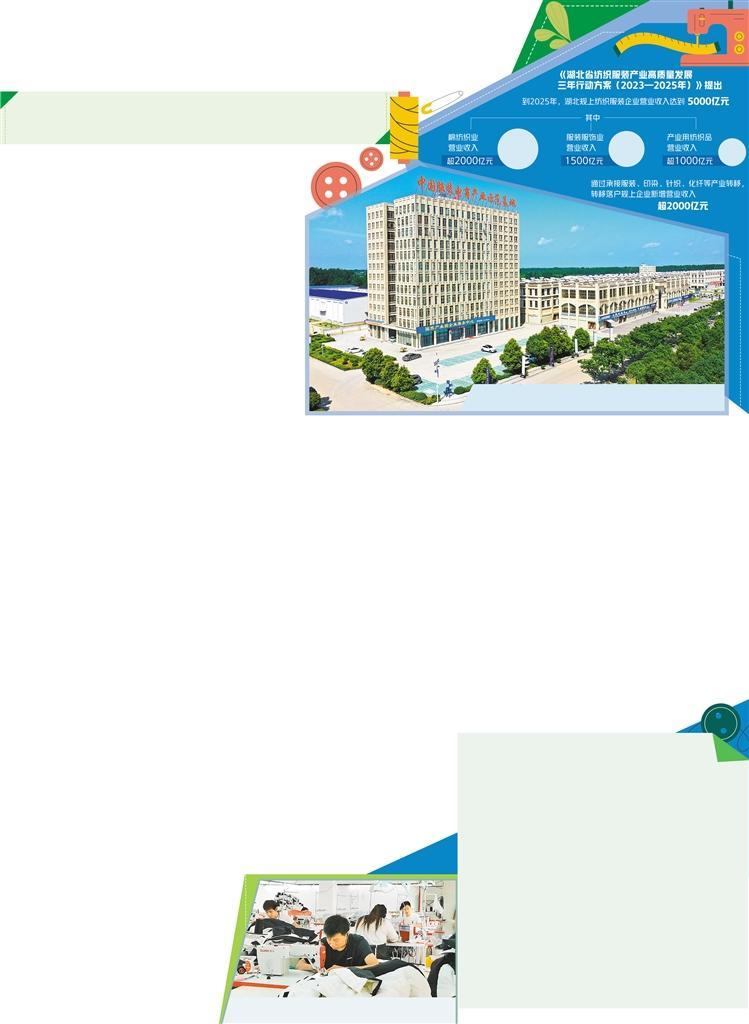 为抓住、抓好产业工人回流家乡的契机,推动服装产业全面转型升级,湖北省发布了《湖北省纺织服装产业高质量发展三年行动方案(2023—2025年)》,为纺织服装产业高质量发展指明方向。