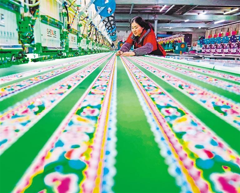 ②1月8日,在广西柳州市融水苗族自治县一家刺绣公司就业帮扶车间,女工在检查刚绣成的产品。