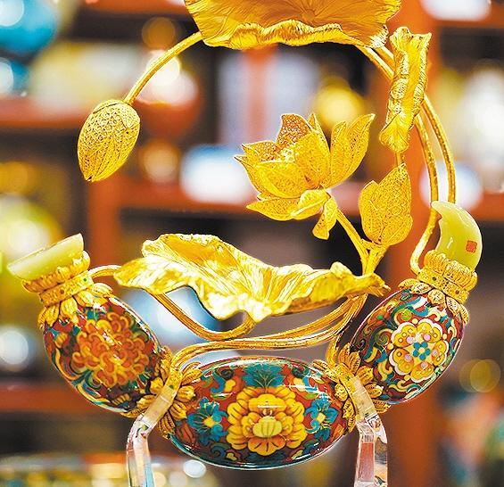 “景泰蓝工艺品需经大大小小108道工序才能完成,制作工艺复杂,似在铜上绣花。”国家级非物质文化遗产景泰蓝制作技艺代表性传承人钟连盛介绍。