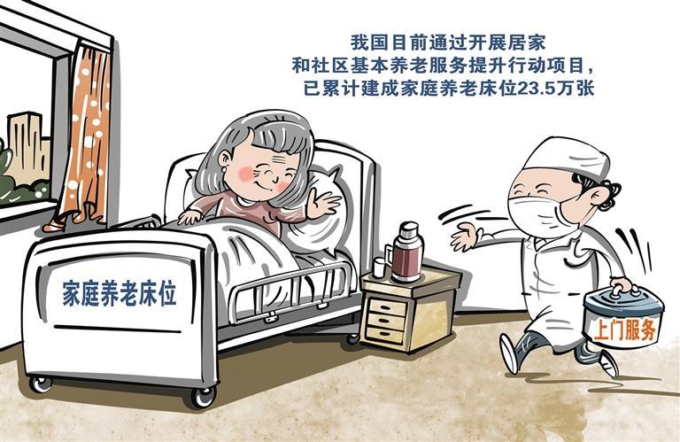 1月14日召开的全国民政工作会议介绍,我国目前通过开展居家和社区基本养老服务提升行动项目,已累计建成家庭养老床位23.5万张、为41.8万老年人提供居家养老上门服务。在我国,九成以上老年人倾向于居家养老。但对于一些失能、半失能老人来说,在家虽有儿女环绕,却少了专业照护。家庭养老床位的诞生,让老年人不出家门就能享受到专业机构的服务,减轻了家人照护负担,缓解“一人失能、全家失衡”局面。下一步,将加快推进养老服务立法,扎实做好立法研究。同时,动态调整国家基本养老服务清单,指导地方落实清单制度,织密织牢养老服务兜底保障网。(时 锋)
