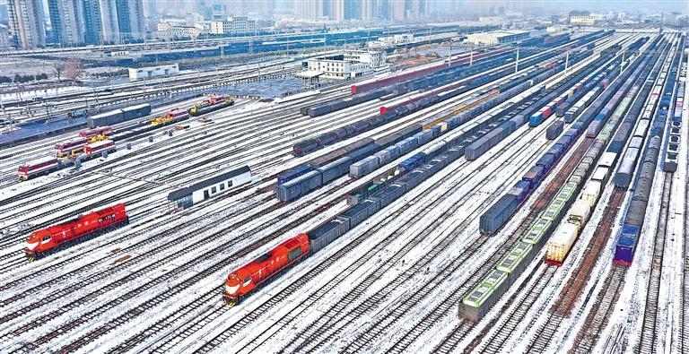 1月17日,雪后的河南郑州北站,一列列货物列车从这里驶向全国各地。春节临近,郑州北站货物列车办理量连续保持高位,当地铁路部门持续提升列车编组作业质量和运输组织效率,保障国计民生重点物资运输安全畅通。