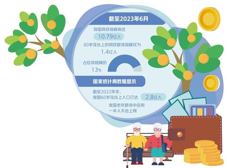 随着互联网、大数据、人工智能等数字技术的快速发展,老年人却逐渐在数字生活中掉了队。第52次《中国互联网络发展状况统计报告》显示,截至2023年6月,我国网民规模高达10.79亿人,而60岁及以上的网民群体规模仅为1.4亿人,占总体规模的13%。同时,国家统计局数据显示,截至2022年末,我国60岁及以上人口已达2.8亿人。也就是说,我国老年群体中还有一半人不会上网。