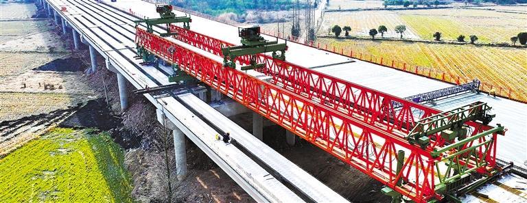 1月18日,浙江省东阳市中铁十五局义东高速三标项目施工现场,横店特大桥双幅贯通,为义东高速年底全线通车奠定了基础。胡扬辉摄(中经视觉)