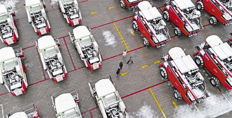 1月20日,在山东省高密市醴泉街道一家农机企业的产品堆场,客户在选购农机。近年来,当地依托工业产业基础,通过减税降费、财政奖补、涉企服务等方面支持,鼓励农机产业向高端化、智能化转型。张进刚摄(中经视觉)