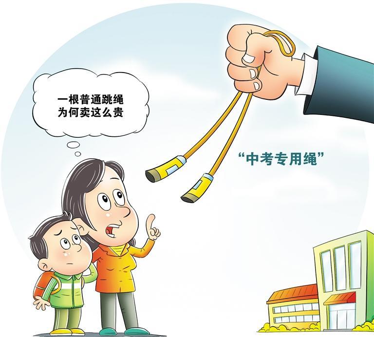 不久前,有报道称,杭州中考专用绳一根卖78元,安徽、重庆、福建等地不少网友也纷纷爆料,当地同样有“中考专用绳”情况,且每根动辄上百元。而多名跳绳品牌厂家负责人表示,一根跳绳的成本仅为三五元到二十几元不等。高价中考跳绳现象,不仅加剧了家长的经济负担,还损害广大家长对学校的信任度和教育考试部门的权威性。有关部门应加大对中考跳绳考试的监管,对中考用绳存在品牌垄断的行为予以坚决查处。对于跳绳等考试体育用品,教育考试部门如通过招标确定某款产品,合同中应有相应的价格条款,如根据市场平均价来明确价格区间,防止相关品牌方牟取暴利。教育部门出台一项政策方案时,应多评估政策调整可能带来的多方效应,及时优化跳绳考试方法。(时 锋)
