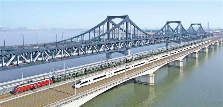 1月25日,高铁和普速列车行驶在横跨钱塘江杭州段的铁路大桥上。2024年春运于1月26日拉开帷幕,预计全社会跨区域人员流动量约90亿人次,将创历史新高。龙 巍摄(中经视觉)