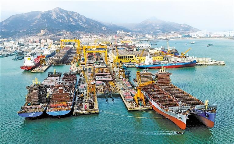1月23日,在山东省荣成市黄海造船(有限公司)厂区,多艘大型船舶正在建造。近年来,荣成市积极推动船舶与海工装备产业高质量发展,加大技术创新和自主研发力度,强化产业链合作,船舶建造效率和技术含量明显提升。杨志礼摄(中经视觉)