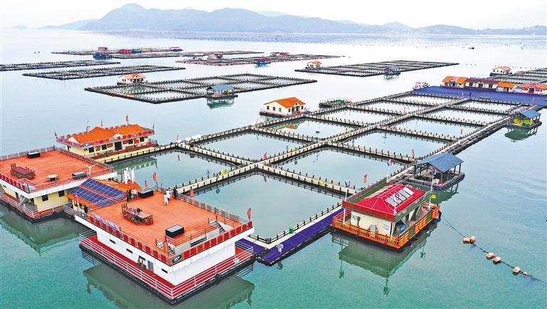 1月25日,俯瞰福建省宁德市白基湾海域大黄鱼养殖基地。近年来,当地强化政策引领,推进海洋牧场建设,不断完善大黄鱼产业链,年产值超百亿元,有力带动了渔民增收。王旺旺摄(中经视觉)
