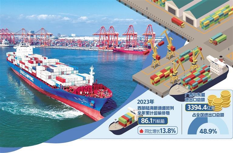 作为我国西南地区主要的物流通道之一,西部陆海新通道是“一带一路”陆海双向开放的金色纽带。广西准确把握区位定位,坚持向海而兴,向海图强,与东盟共挽,与大湾区相融,加快打造国内国际双循环市场经营便利地,积极服务构建中国—东盟命运共同体。