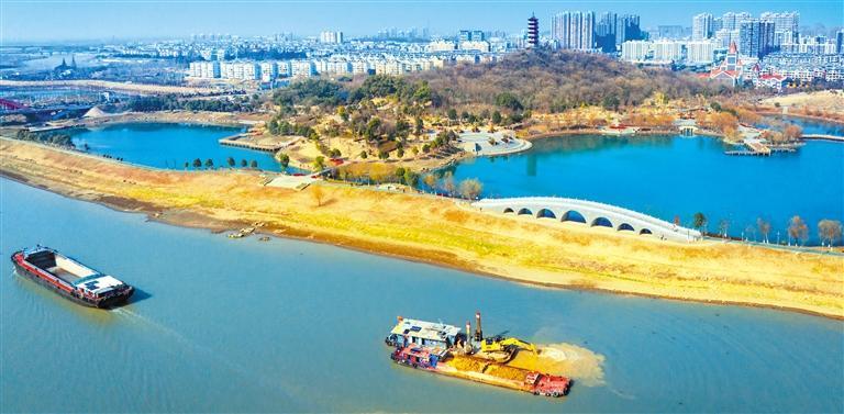 1月27日,安徽省当涂县姑溪河上,清淤船正在清理河道。当地利用冬修水利黄金期,全力做好河道水塘清淤工作,不断改善修复河道及滨水带生态功能,提升河道防洪能力。张明伟摄(中经视觉)
