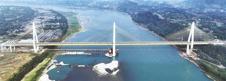 1月28日,四川省宜宾市江安第二长江大桥项目现场,建设者们正在进行路灯安装等扫尾工程。大桥将于春节前通车,有望缓解区域内长江南北两岸交通压力,助推长江经济带发展。