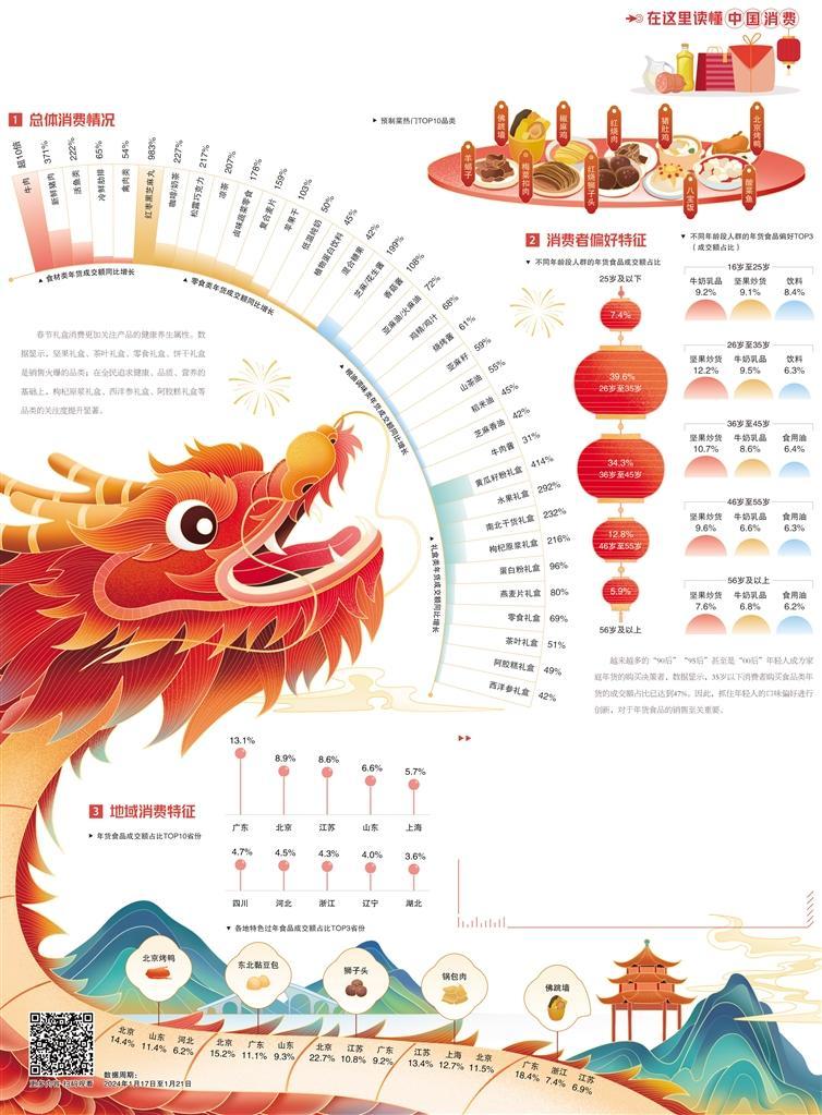 春节临近,年货食品消费表现出强劲增长势头。在年轻消费群体崛起、新兴消费品类涌现的影响下,年货消费市场也呈现出新动态,健康升级、跨地域尝鲜成为年货食品消费的关键词。