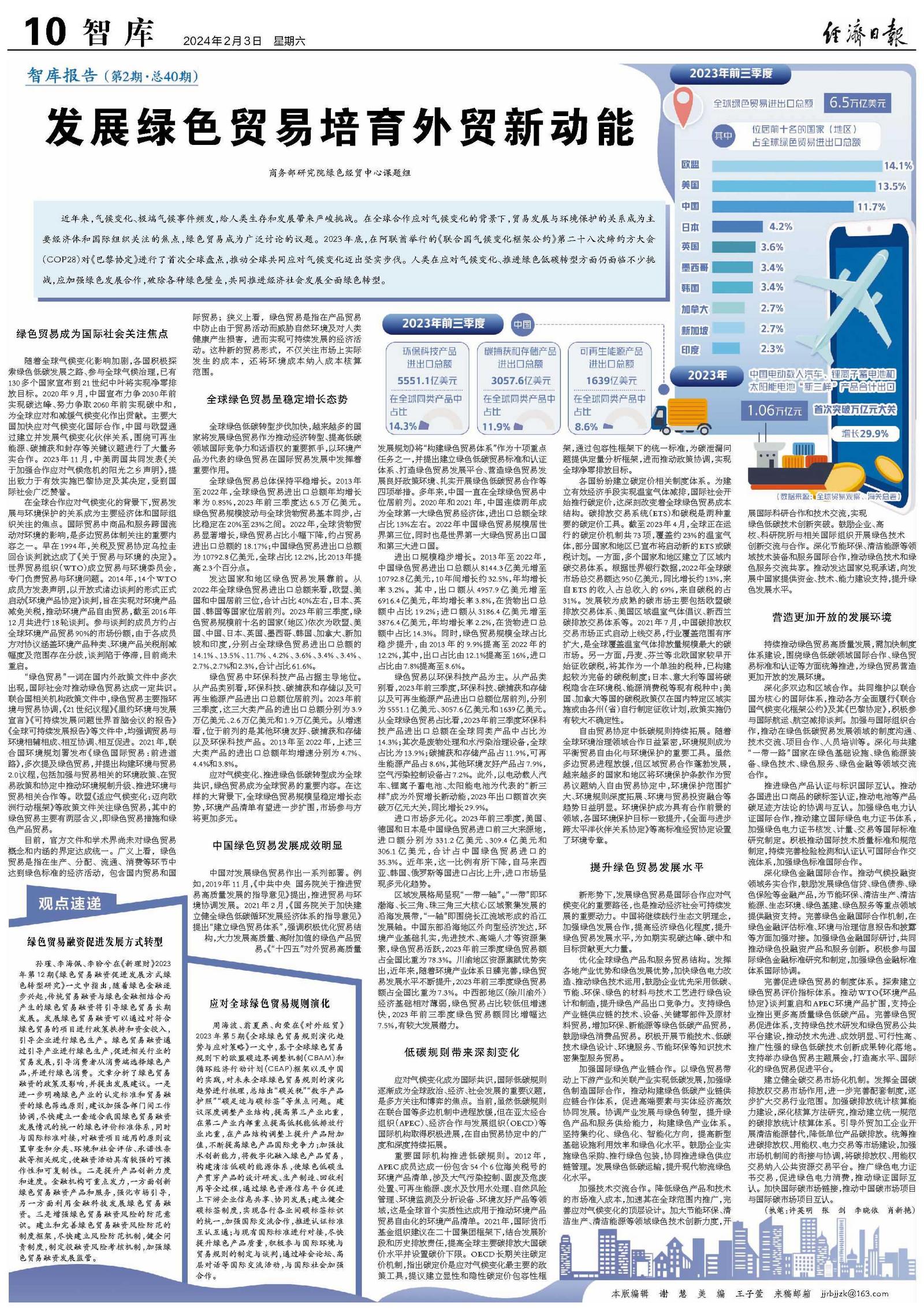 全球绿色低碳转型步伐加快,越来越多的国家将发展绿色贸易作为推动经济转型、提高低碳领域国际竞争力和话语权的重要抓手,以环境产品为代表的绿色贸易在国际贸易发展中发挥着重要作用。