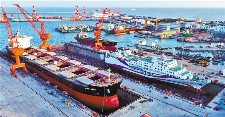 近年来,荣成市抢抓“一带一路”机遇,不断加大港航和修船企业高端项目投入,着力打造布局合理、结构优化、节能环保的新型船舶维修工业体系,吸引了20多个国家和地区的大型船舶靠泊维修。